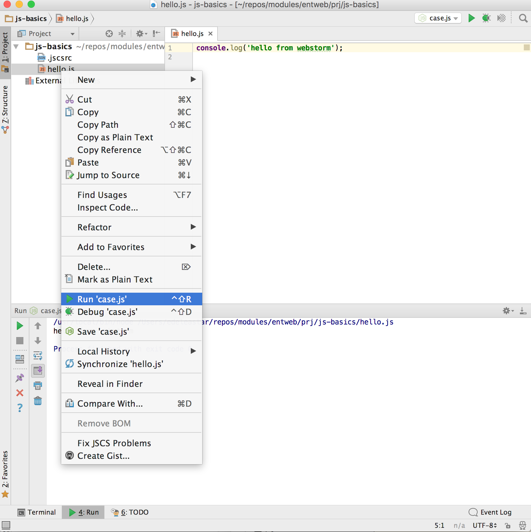 For this lab, we will dispense with the need for html and a browser to run the code, and make use of webstorm (and node) to run the programmes.