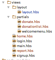 With this infrastructure in place, we can incorporate the remaining views for our application. This will involve additional partials + views structured as follows in the project: