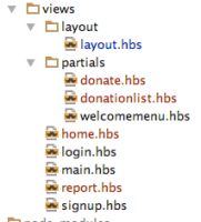 Extend the application to employ layouts, templates, and partials. Include simple interaction features to track users and donations.