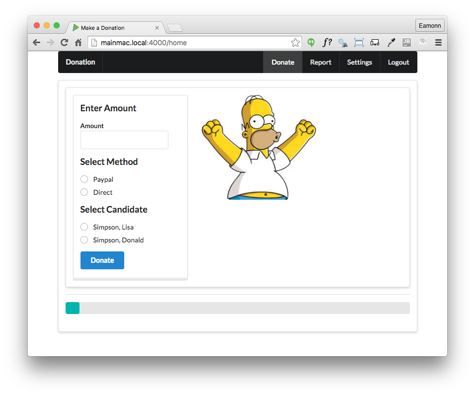 One the home view, we should pass the list of candidates to the view to enable the user to select which candidate to make a donation to: