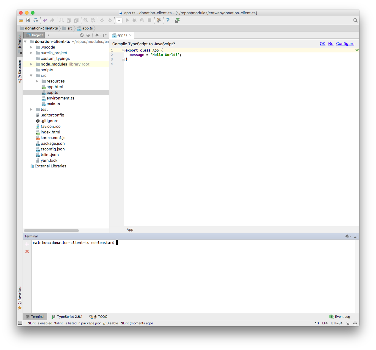 Redevelop a version of donation-client in Typescript. This version should match the features in the Aurelia Lab 3 application.