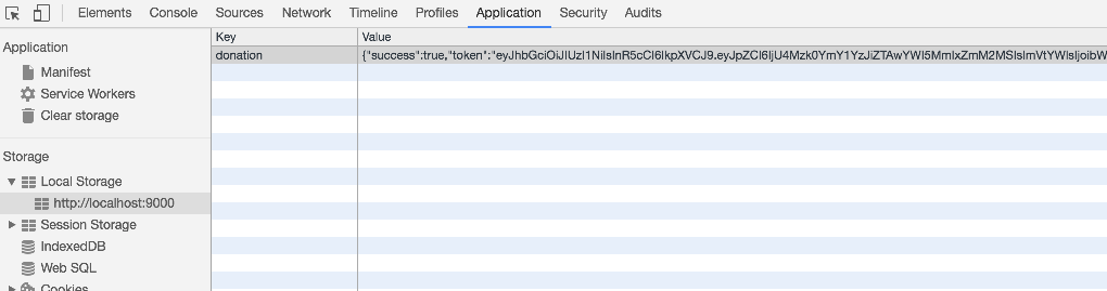 This stores the token in the key donation. We can inspect this in the browser developer tools: