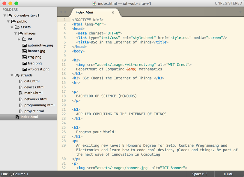 Explore the pages in detail - and note the range of images in the assets folder. Also notice that all of the files are inside the public folder of the project.