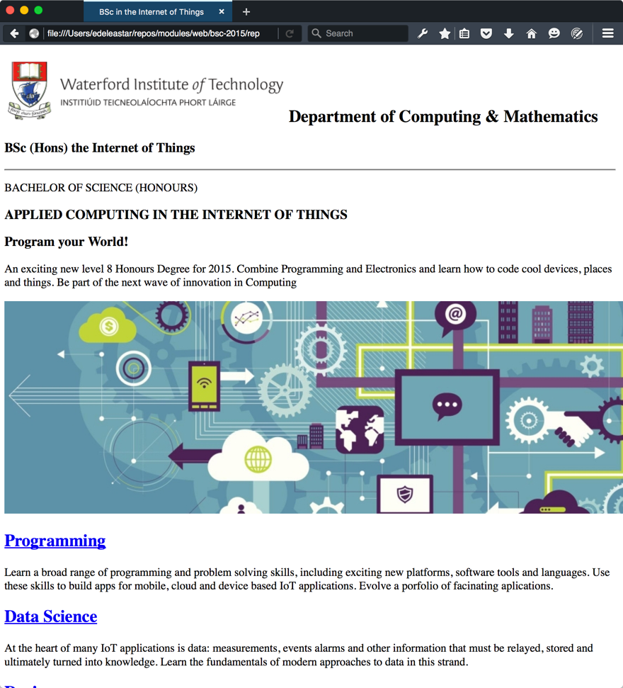 An exciting new level 8 Honours Degree for 2015. Combine Programming and Electronics and learn how to code cool devices, places and things. Be part of the next wave of innovation in Computing