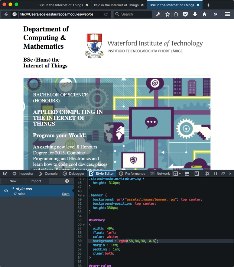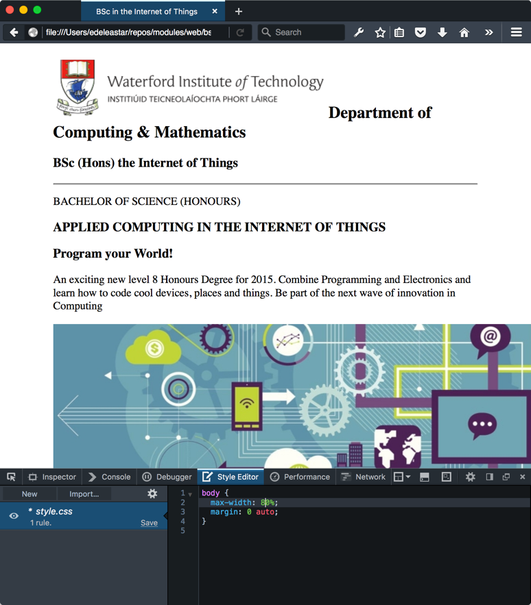 In the lab the web is evolved from unstyled content to a reasonably elegant and clean design. The site employs basic CSS formatting.
