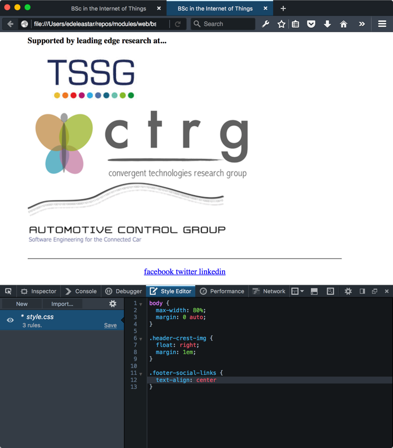 These are to better position the header crest and also the social media links at the foot of the page. They will only work if we give these elements the appropriate classes: