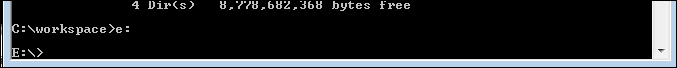 If your workspace is located on another drive, the enter that drive letter first - say "G:", press return, and then try the cd and dir commands.