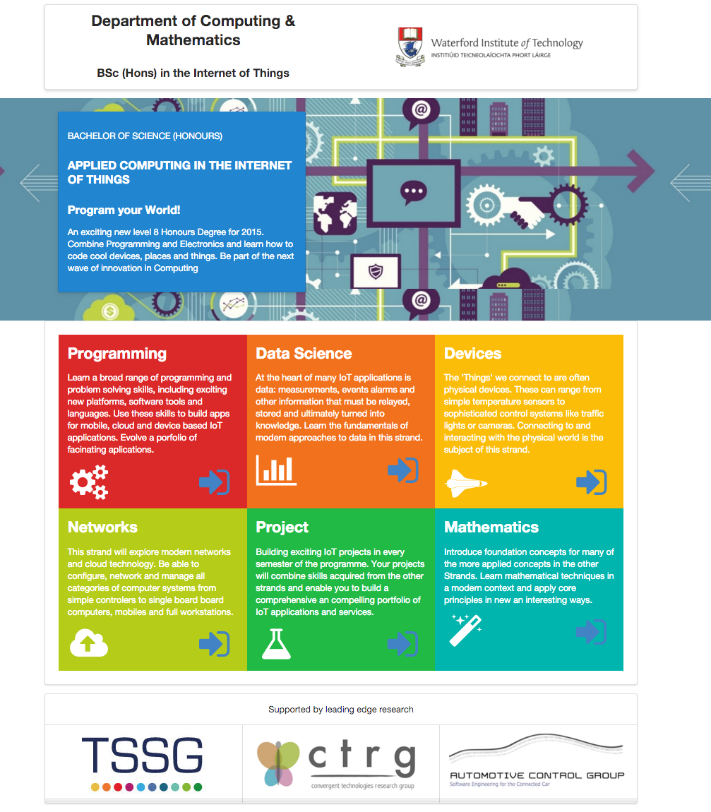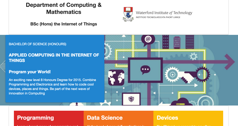 An exciting new level 8 Honours Degree for 2015. Combine Programming and Electronics and learn how to code cool devices, places and things. Be part of the next wave of innovation in Computing