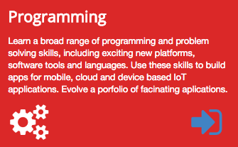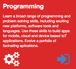 Learn a broad range of programming and problem solving skills, including exciting new platforms, software tools and languages. Use these skills to build apps for mobile, cloud and device based IoT applications. Evolve a porfolio of facinating aplications.